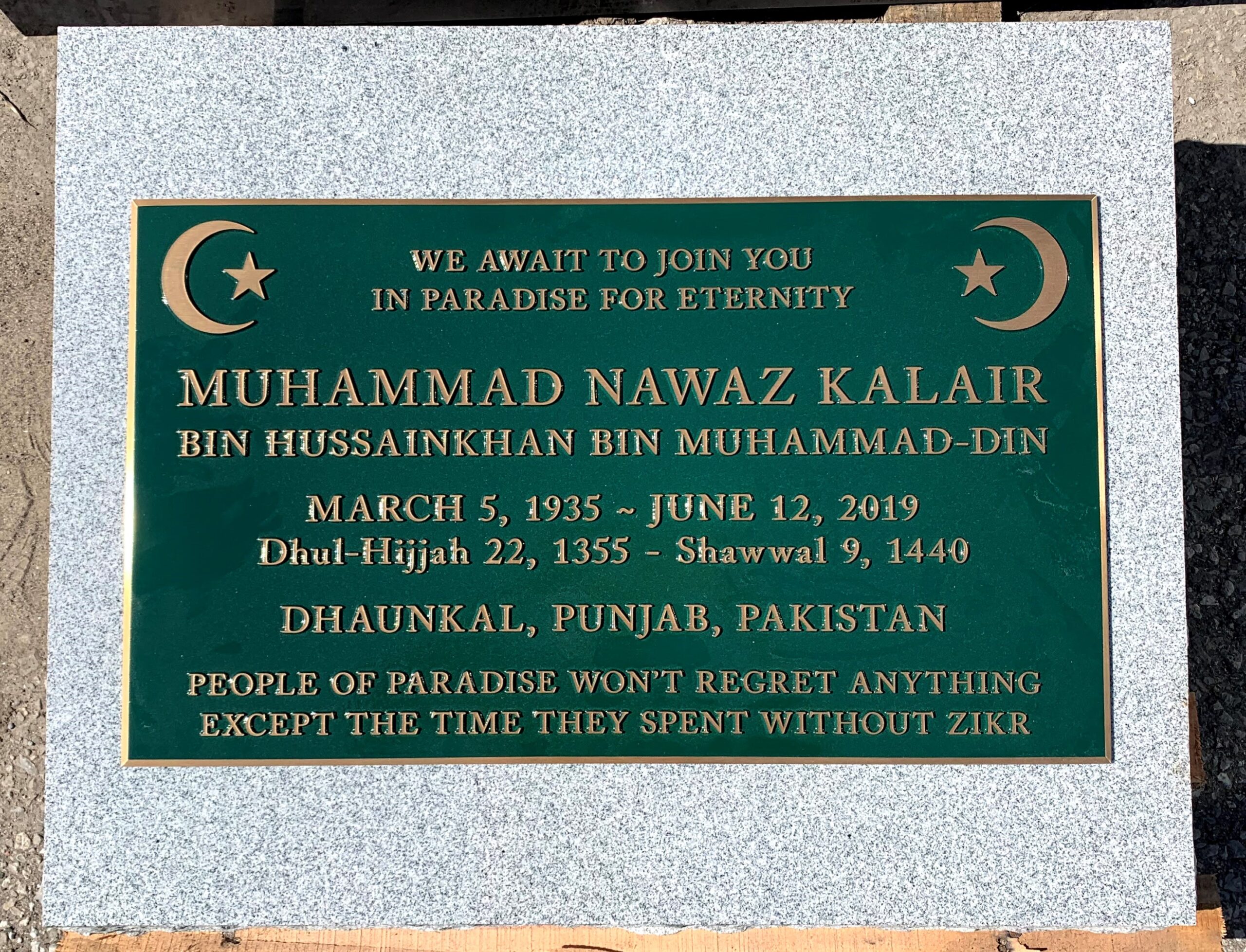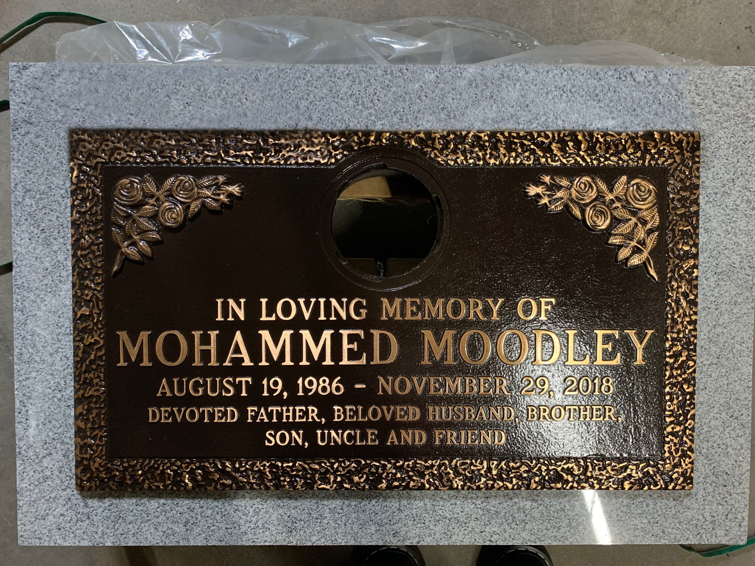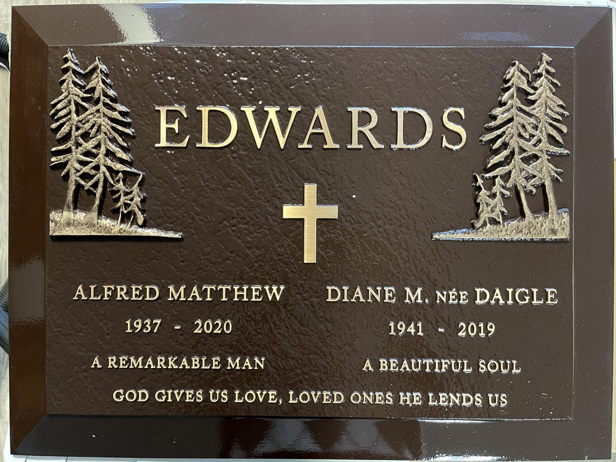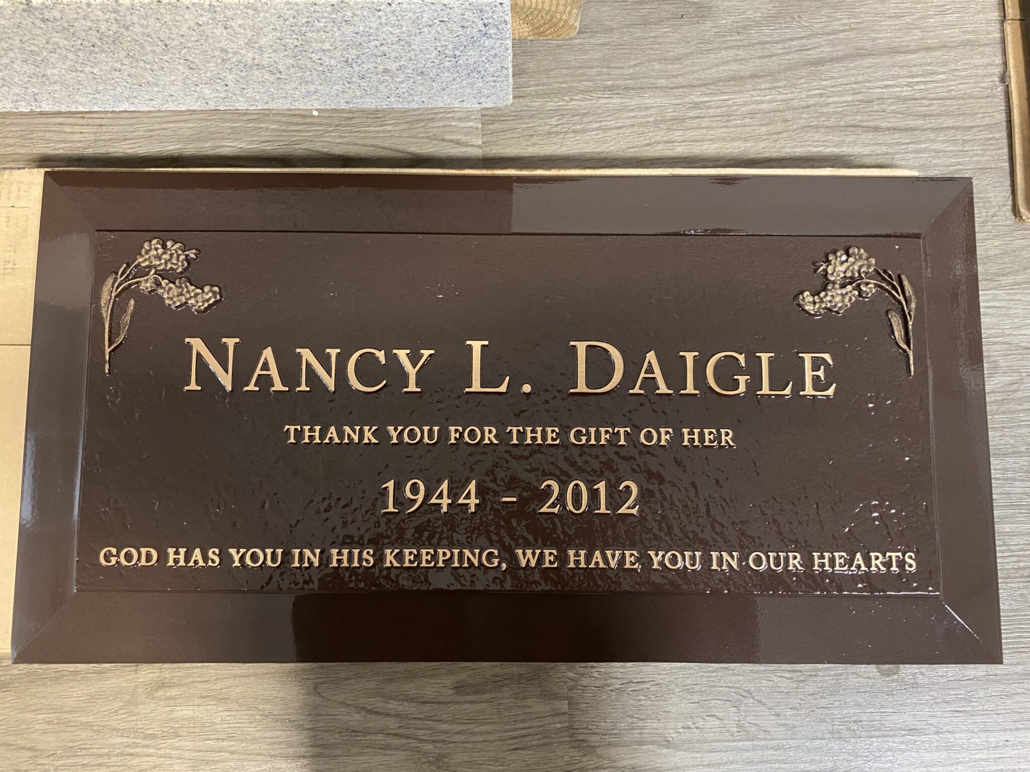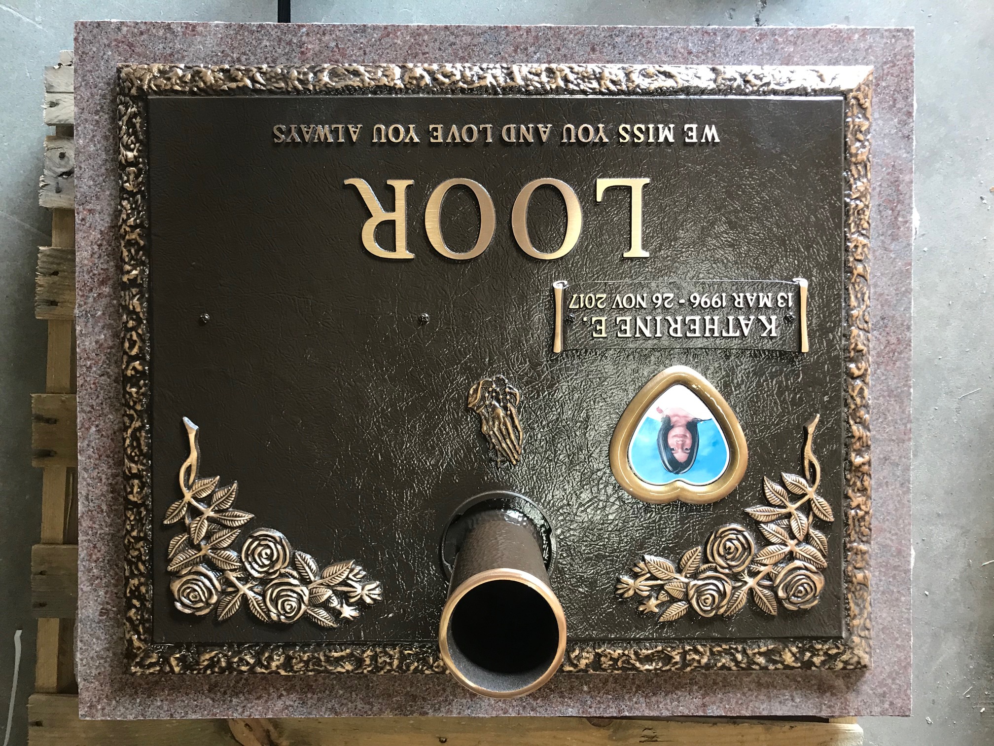 We are proudly Canadian-made bronze memorial plaques. Our standard bronze granite markers are made of high quality bronze attached to our standard light grey granite base. Bronze Granite Markers are an attractive alternative to the traditional upright headstones. Some cemeteries allow bronze with a granite base as an option, while at other cemeteries it is the only option. Verify with your cemetery if they permit granite bases, and if so, in what size and color. A standard granite base is four inches thick, and extends two inches beyond each edge of the bronze marker. Vase holes will be bored through the base for markers with built-in flower vases. Please keep in mind that granite is a natural occurring stone. The concentration and distribution of the various color components will vary with each piece of granite. If the cemetery request granite color other than those we offer, please contact us for a price quote.