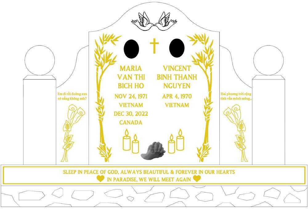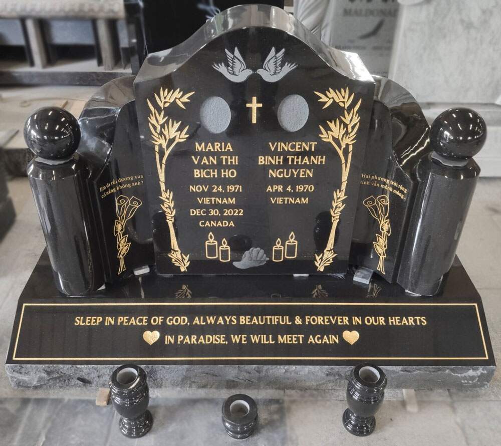 Monuments are designed with creativity and unique expression. There is no limit to what can be done with a granite memorial with your imagination. We can help you turn a lifetime of memories, themes and accomplishments into a unique personalized memorial tribute. Our custom shapes, designs, colours & accessories, there are endless possibilities.