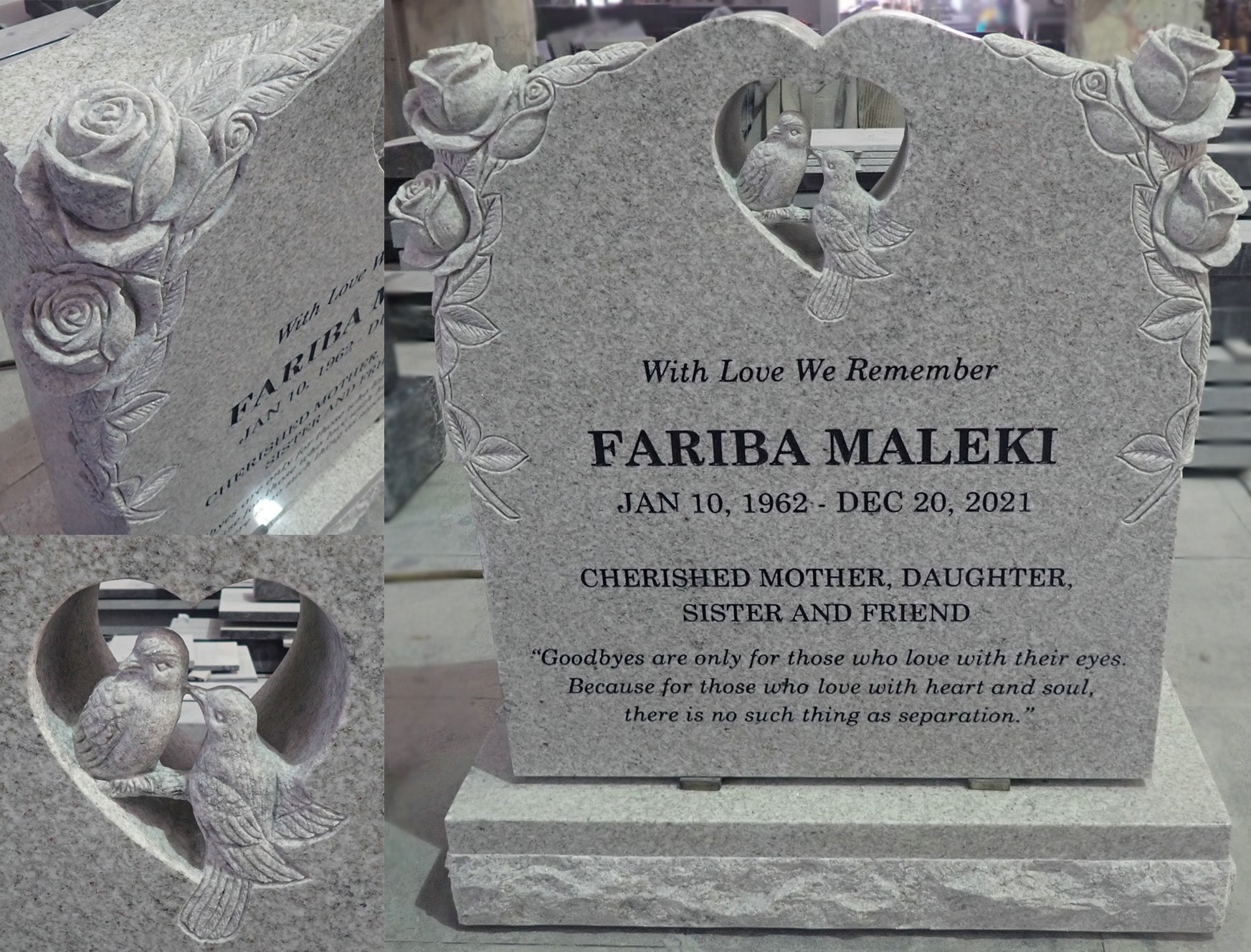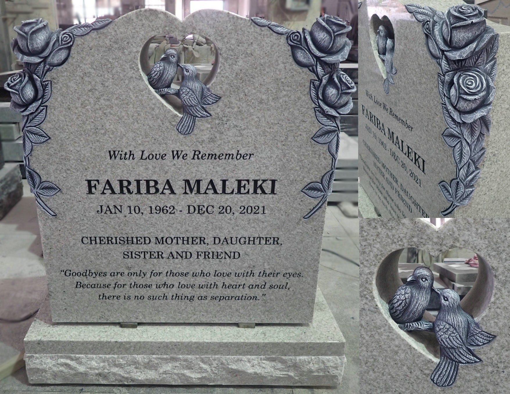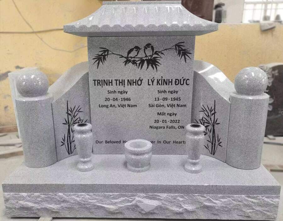 Monuments are designed with creativity and unique expression. There is no limit to what can be done with a granite memorial with your imagination. We can help you turn a lifetime of memories, themes and accomplishments into a unique personalized memorial tribute. Our custom shapes, designs, colours & accessories, there are endless possibilities.