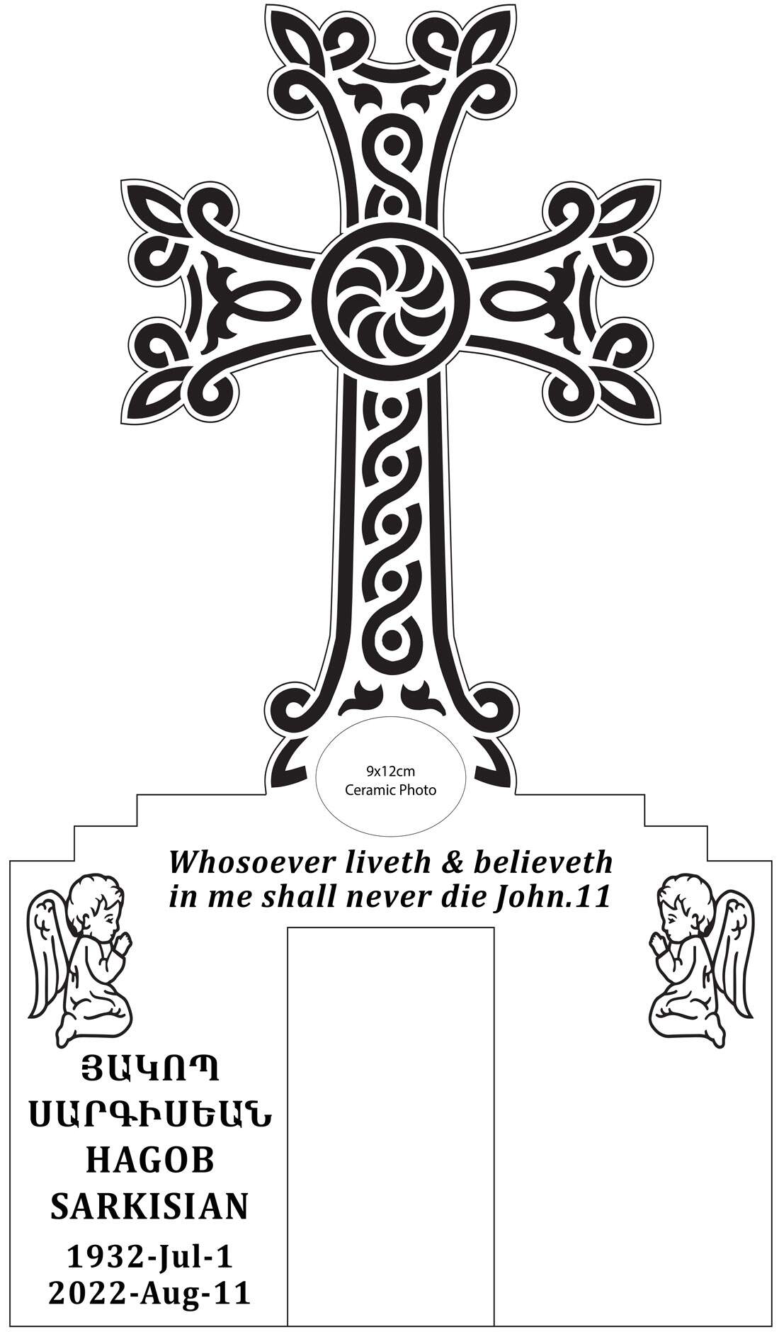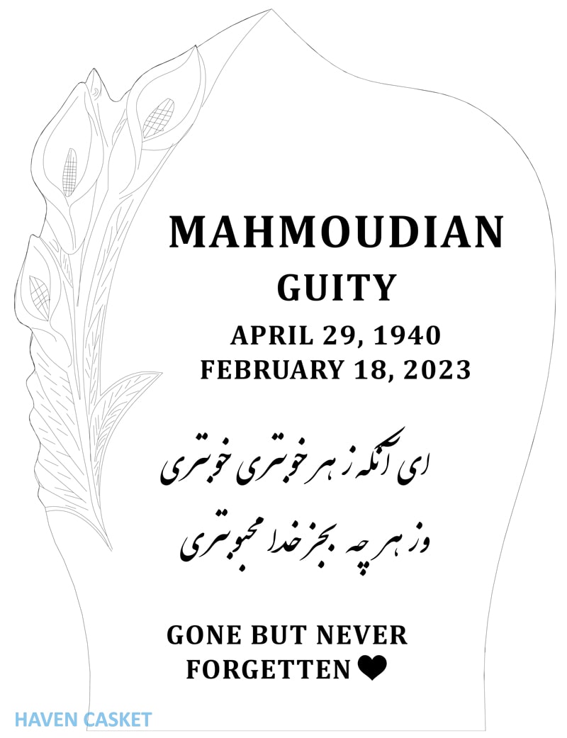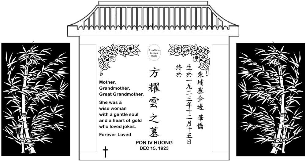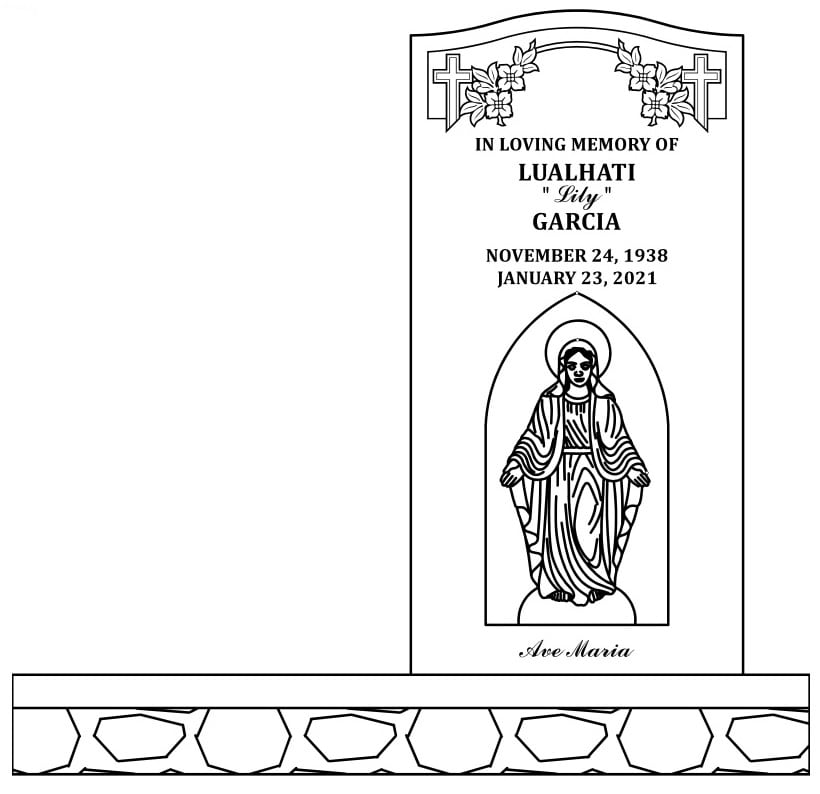 A rough template outlining the elements you’d like to include such as size of headstone, shape, colour and any designs will be displayed on the rough template. You will have an opportunity to make revisions and then approve the final template.