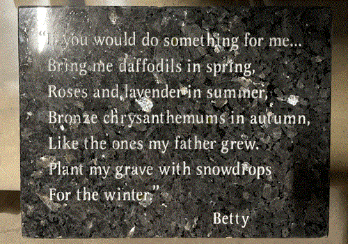 Please review our Policy on Production & Delivery for Monuments, Grave Markers and Headstones.