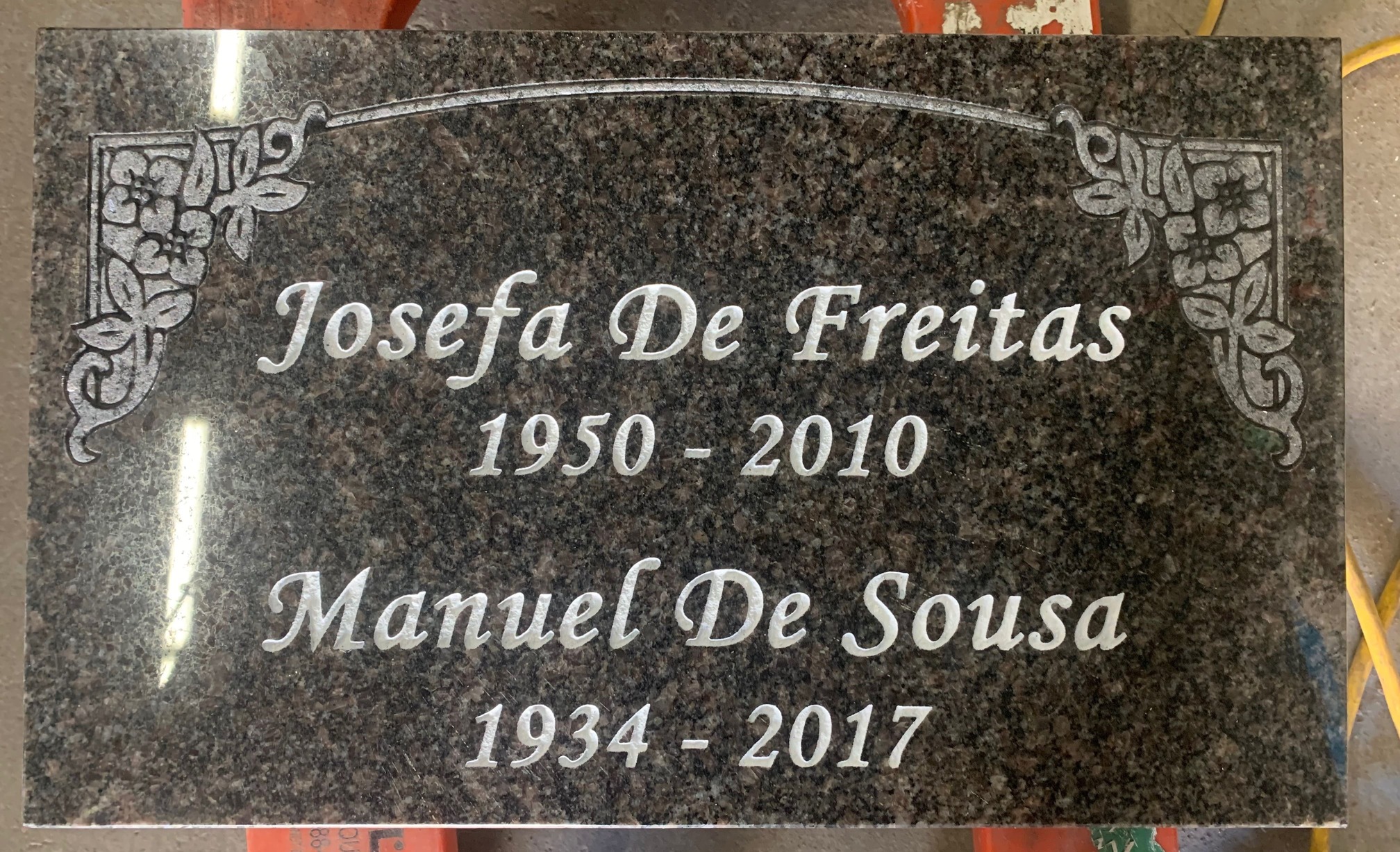 Granite markers can vary slightly in colour depending on the amount of light exposure. The benefits of choosing a granite flat marker is the wide selection of granite colours available. We have a wide selection of granite markers for you to sample. This allows you to get a feel of the difference that granite colours can create to the beholder. Size and shape can be adjusted upon preference. Single and companion granite markers can be produced in any granite colour and to your specified size.
