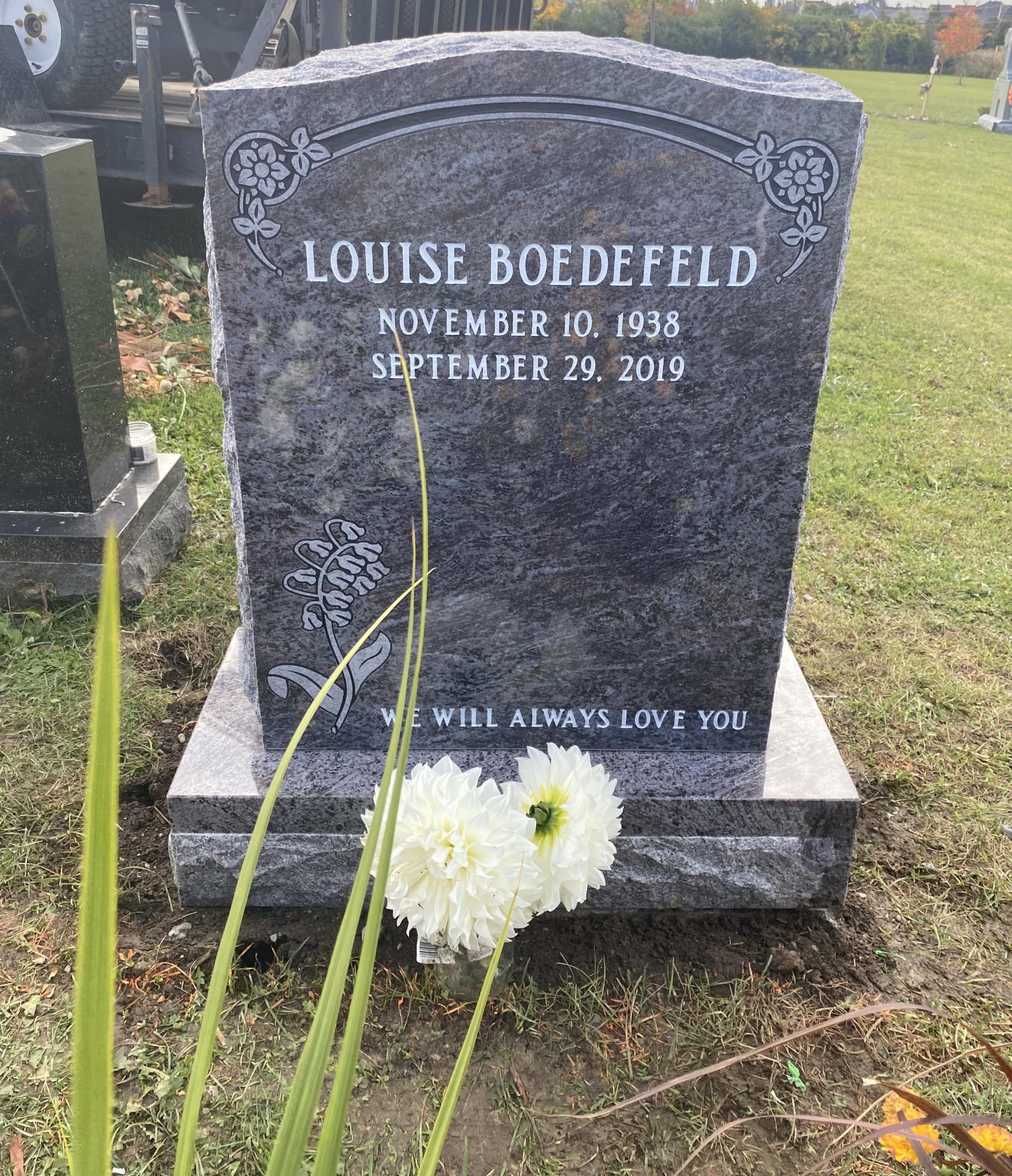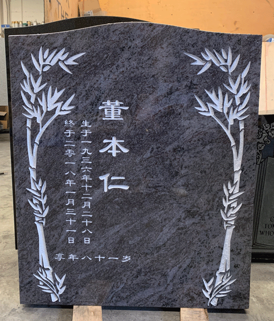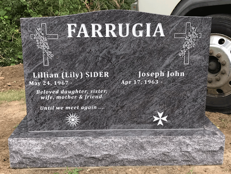 Bahama Blue can vary slightly in colour depending on the amount of light exposure. We have a wide selection of sample headstones for you to view. Headstones can be customized to fit any requirements. Size and shape can be adjusted upon preference. For companion headstones, please contact us for more information.