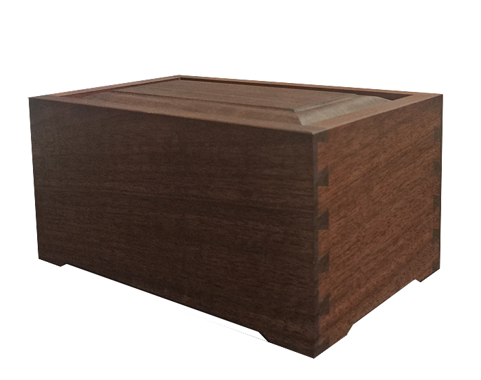 Design: 100% Canadian wooden urn, made from walnut hardwood in a semi-gloss finish. Dove tail detailing for the sides of the urn for unique and beauty. Opens from the bottom, screws keep bottom panel securely in place.
